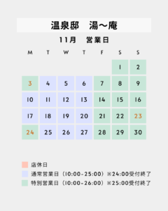 AM10:00~翌日AM1:00(最終受付0:00まで)